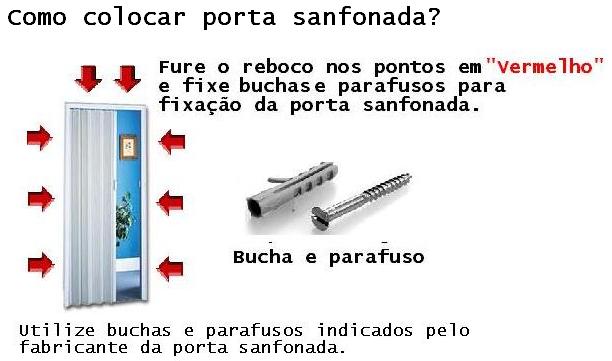 Enfim, devemos furar o reboco com furadeira elétrica e colocar buchas e parafusos para fixação da porta sanfonada.