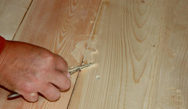 2º Passo: Pegue um pouco de massa propria para madeira com uma espátula e passe sobre o defeito.