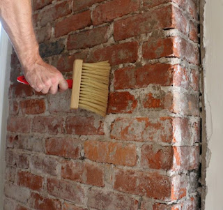 1º Passo: Raspe bem o reboco que está soltando, elimine a poeira com uma vassoura de pelo e jogue bastante água para limpar melhor a superficie.