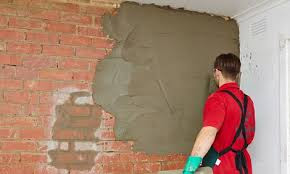 Tenho uma parede externa da casa que quero pintar, so que a tinta antiga tem partes que esta soltando. Então comecei a raspar com uma espatula e fui retirando a tinta grossa, so que em determinados lugares foi caindo o reboco. O que faco? Tenho que passar massa de cimento ,ou tapar os buracos com gesso? Qual a tinta que usaria depois para pintar??