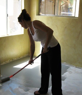 2. Lavar bem o piso com bastante água/sabão neutro, aguardar o piso secar e aplicar primer epóxi como pintura base.